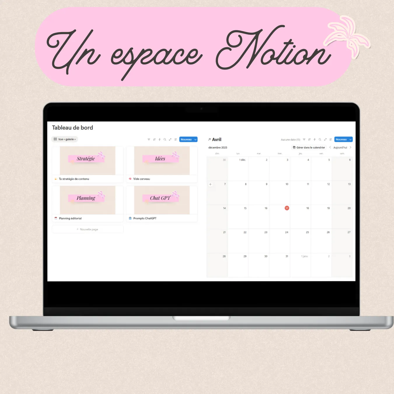 • Un espace Notion pour organiser ta création de contenu