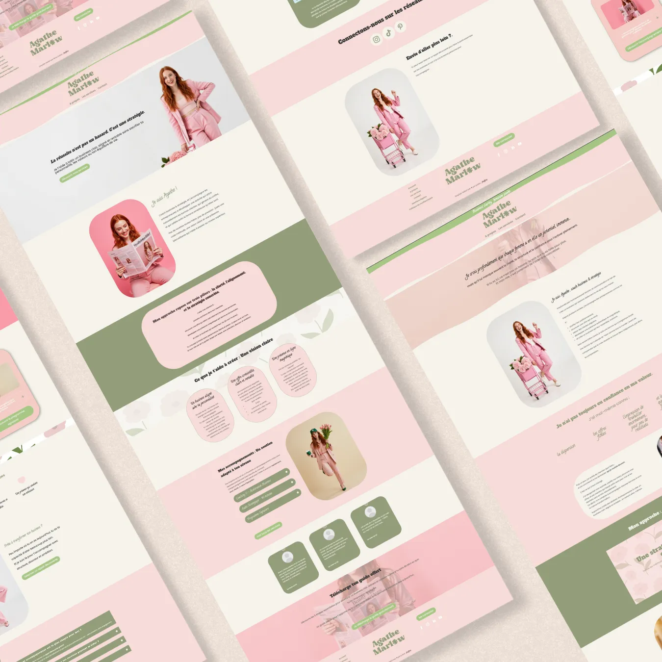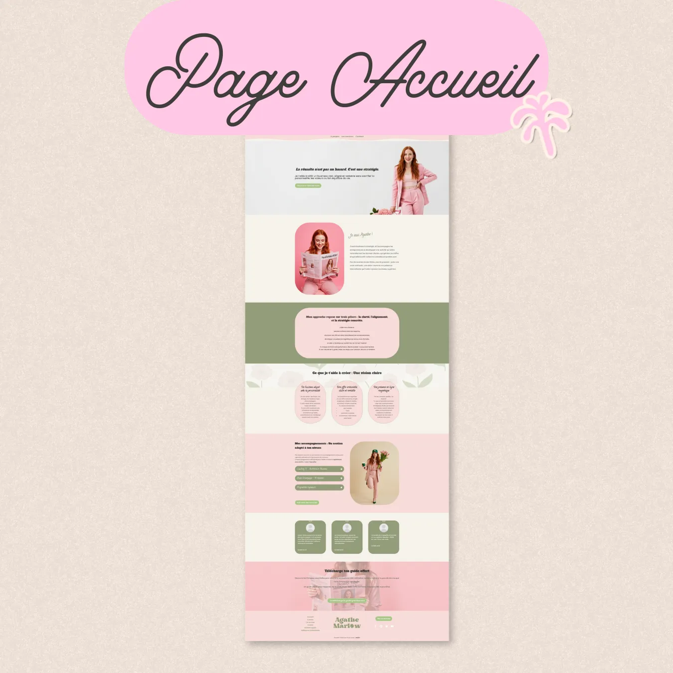La structure est volontairement simple, fluide et efficace : chaque page a un rôle précis et guide naturellement ton prospect vers la prise de contact.