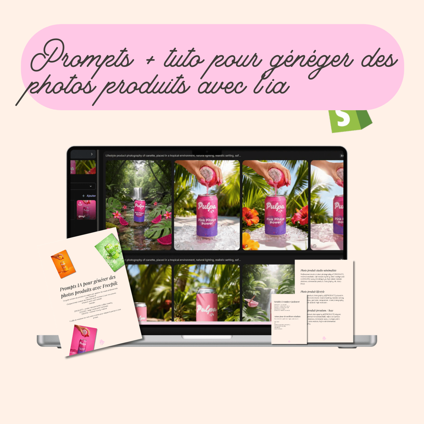 • Un PDF de prompts IA pour générer facilement des photos produits avec Freepik