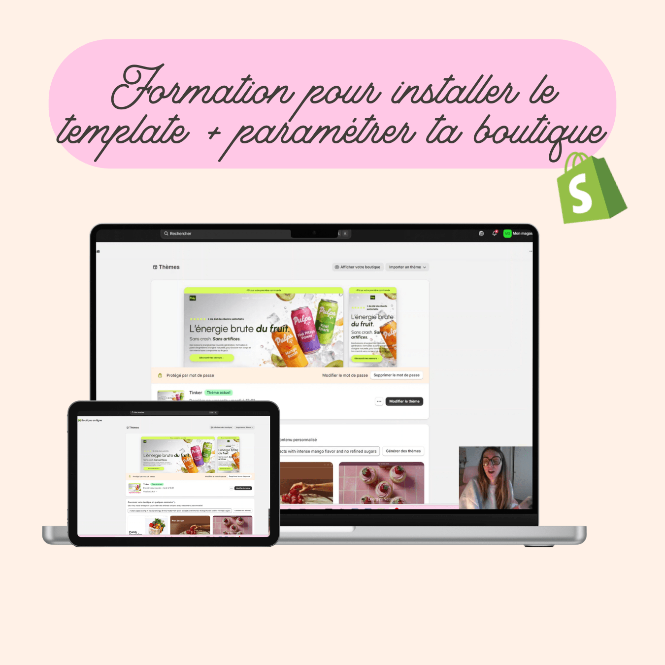 • Une formation vidéo pour installer le template et paramétrer ta boutique